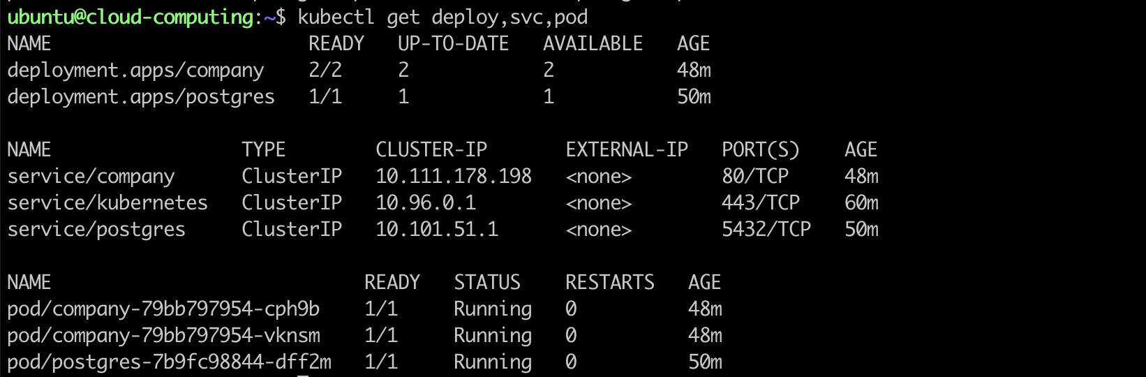 kubectl apply -f company.yml으로 application의 deployment와 service를 만들어준다.