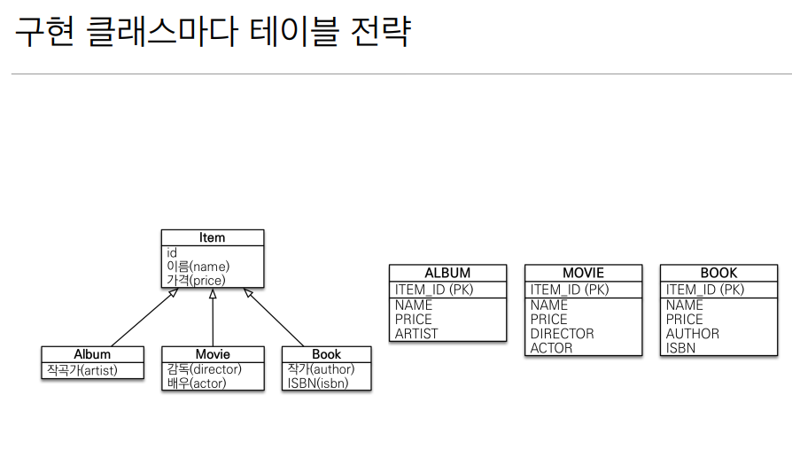 ------------------ 구현클래스마다 테이블전략와 차이