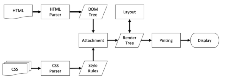 이렇게 렌더 트리가 완성되면 브라우저는 Attachment라는 과정을 통해 스타일 정보를 계산합니다. 렌더 트리로 생성된 모든 노드들은 attach라는 함수를 가지고 있는데, 이 Attachment라는 과정에서 이 메소드들이 호출되게 되며, 해당 메소드는 스타일 정보를 계산하고 결과값을 객체 형태로 반환하게 됩니다.